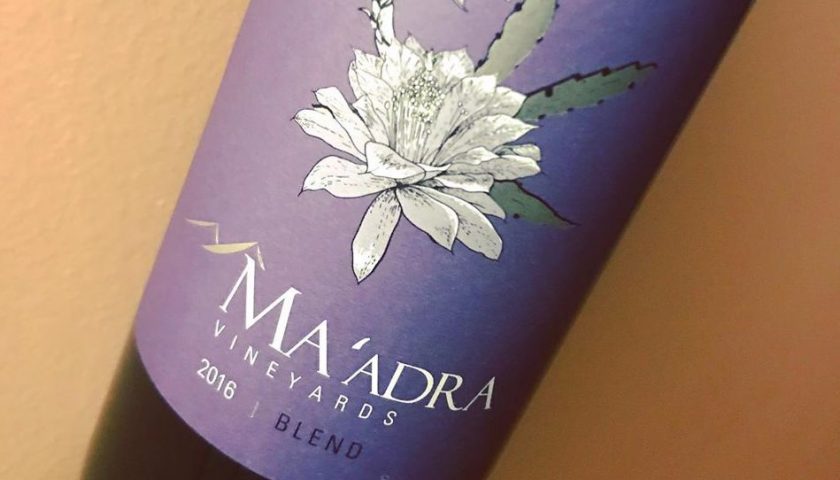 Ma’adra Vineyards Blend 2016.Balıkesir Gömeç Kubaçlar köyünde bulunan 550 metre yükseklikte Ma’adra Bağları’nda yetişen %65 Syrah, %35 Cabernet Sauvignon üzümlerinden yapılmış. Alkol:%13.5