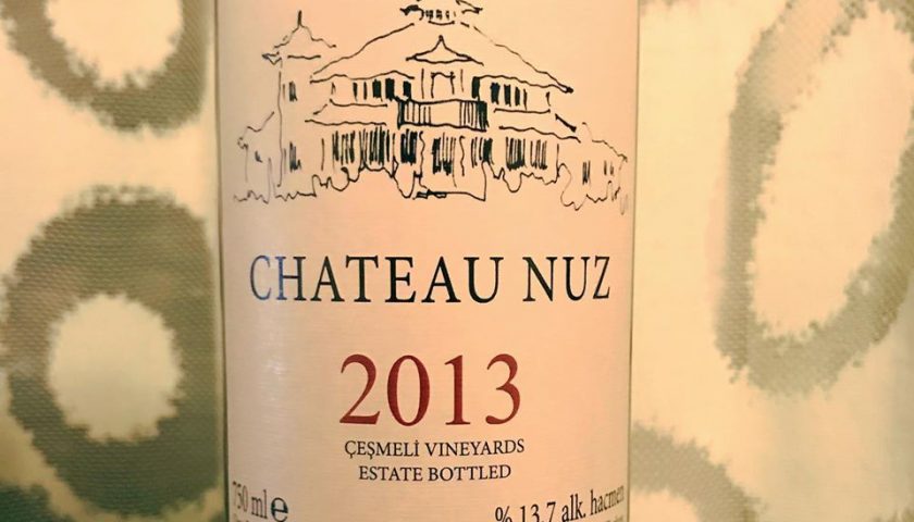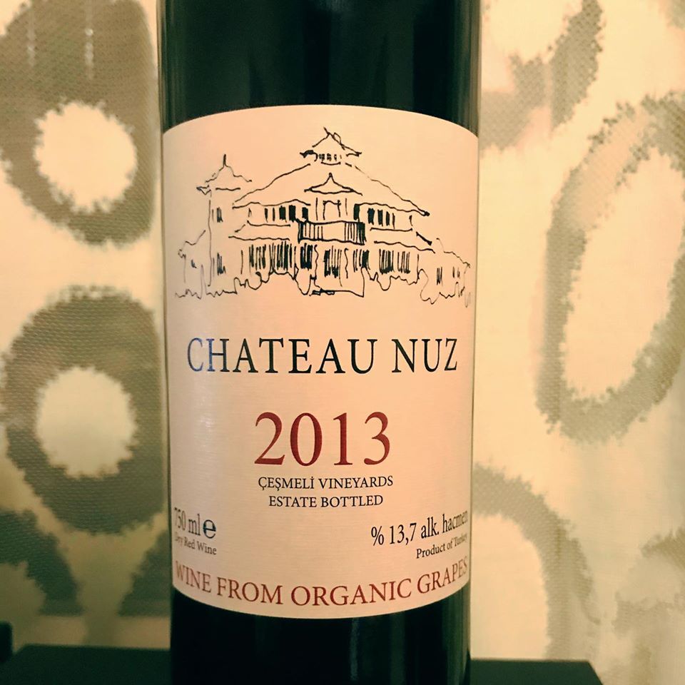 Chateau Nuz 2013. Chateau Nuzun Organik Çeşmeli bağlarında yetişen %31 Cabernet Sauvignon, %47 Merlot, %13 Syrah, %4 Öküzgözü, %3 Pinot Noir ve %2 Zinfandel üzümlerinden yapılmış. 12 ay Fransız meşe fıçılarda dinlendirilmiş. Alkol:%13.7