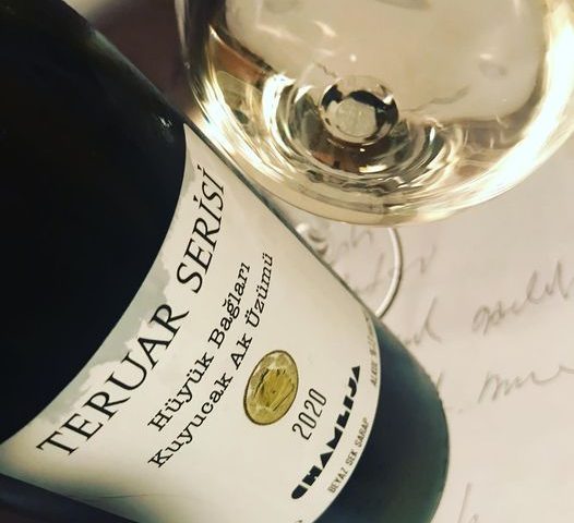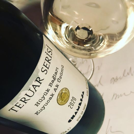 Chamlija Teruar Serisisi Kuyucak Ak Üzümü 2020. Konya Beyşehir Göller bölgesinde Hüyük’teki 70 yaşını aşmış %100 Kuyucak Ak üzümü, düşük basınçta karbon buzu ile alınan şırası çelik tanklarda mayalanmış 3 ay meşe fıçılarda dinlendirildikten sonra kısıtlı filtrasyon yapılarak şişelenmiş. Alkol:%13.