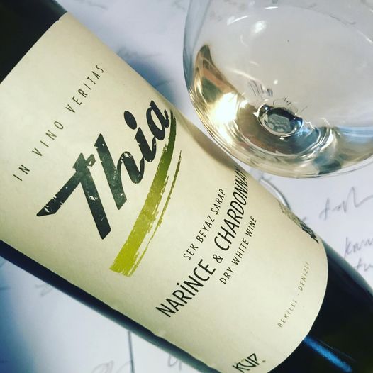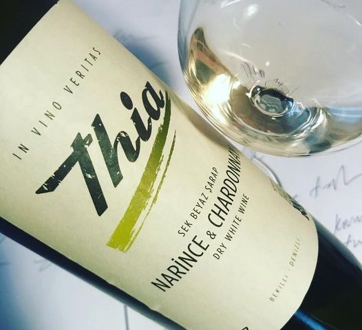 Küp Thia Narince Chardonnay 2019. Denizli Güney’de Chardonnay, Bekkili’den Narince üzümlerinden yapılmış. Alkol: %13.