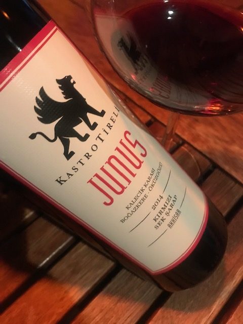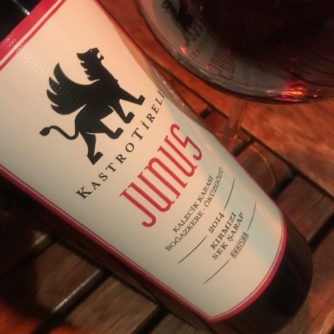 Kastro Tireli Junus 2014. Manisa Akhisar’ın Pınarcık köyündeki 200-280 metre rakımlı Tireli Çiftliği Bağları’nda yetişen %5 Öküzgözü, %59 Kalecik Karası,%36 Boğazkere üzümlerinde yapılmış. Alkol:%15