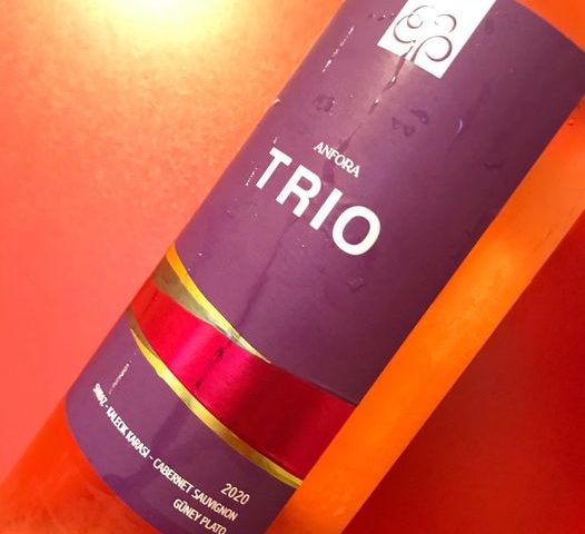 Pamukkale Anfora Trio Rose 2020, Denizli Güney’de yetişen Shiraz, Kalecik Karası ve Cabernet Sauvignon üzümlerinden yapılmış. Vegan şarap. Alkol:%12