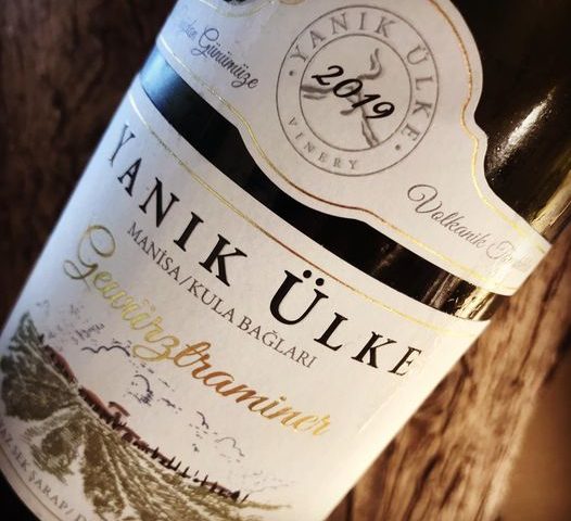 Yanık Ülke Gewürztraminer 2019. Manisa Kula’da bulunan, Yanık Ülke Kula Bağları içindeki tek bağdan gelen %100 Gewürztraminer üzümlerinden yapılmış. Alkol:%14
